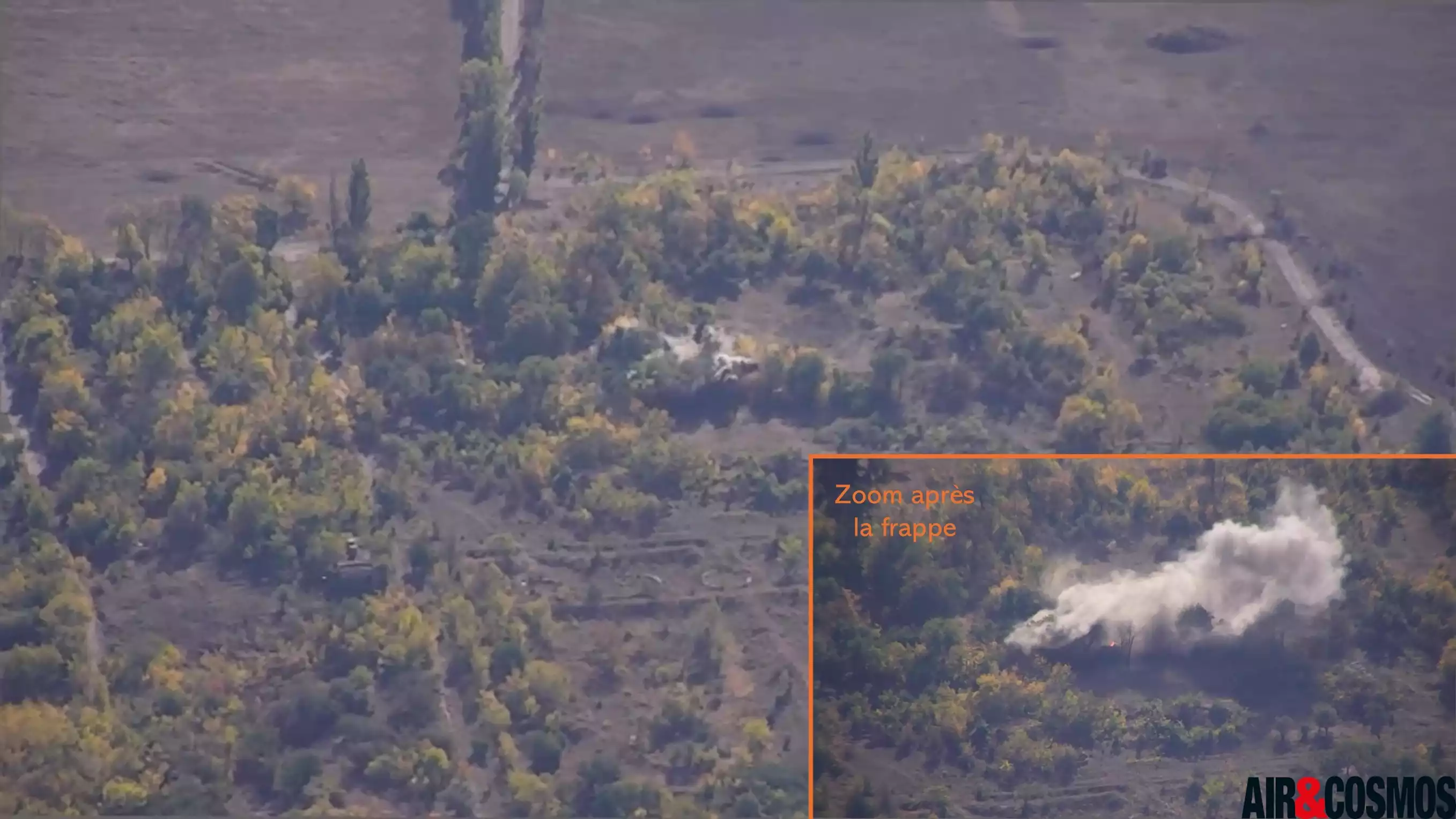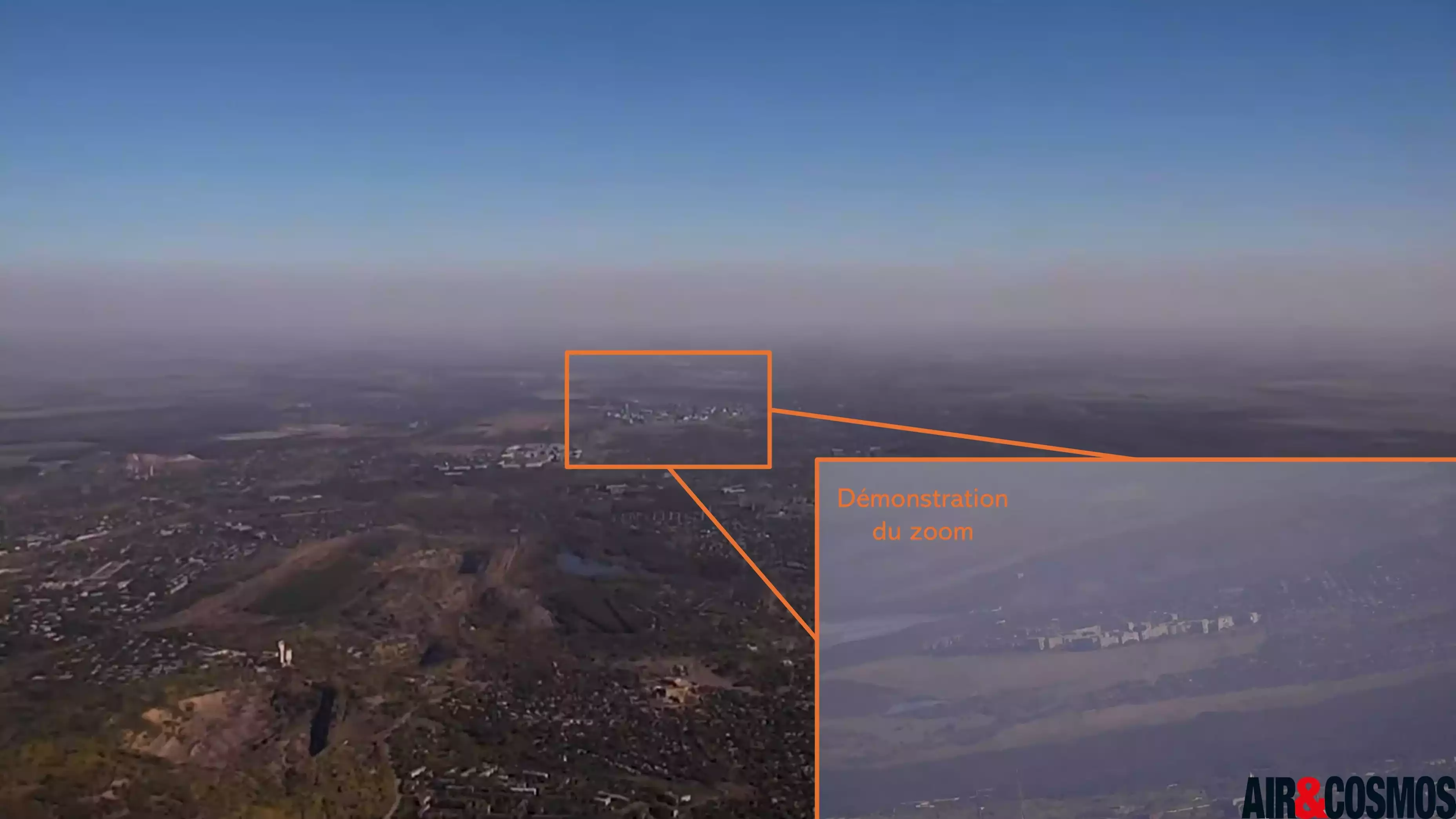 Während eines Aufklärungsflugs demonstriert eine DT26E Tactical Drohne der ukrainischen Streitkräfte den Vorteil des Kamerazooms © Maks Matsyuk, Air&Cosmos