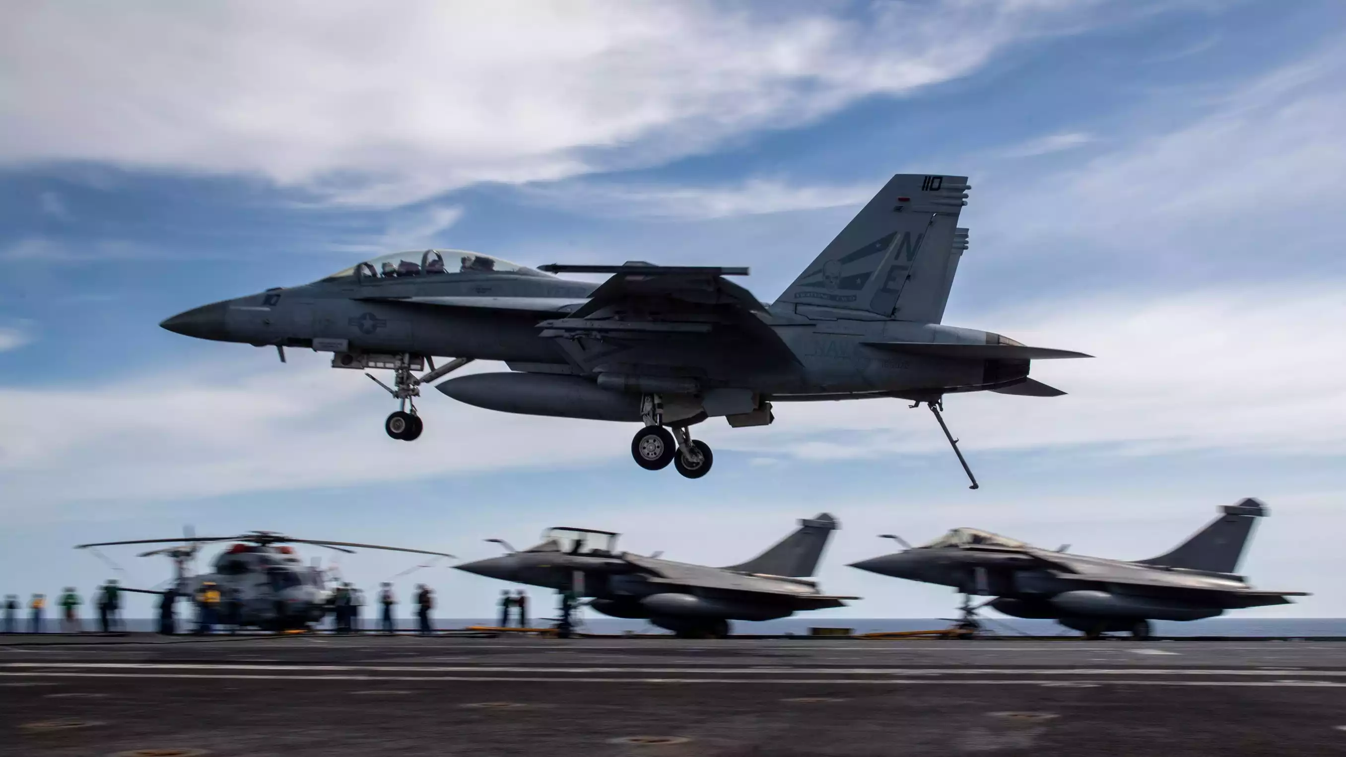 Landung einer F/A-18F Super Hornet der US Navy auf dem französischen Flugzeugträger Charles de Gaulle während der Übung Pacific Steller 25 (10. Februar 2025). © US Navy